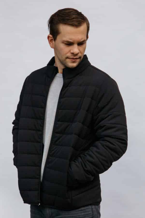 Made Responsibly in China. Our Men’s Puffer Jacket features our soft, 4-way stretch fabric with a two-way zip. With our water resistant fabric, we’ve found ways to provide comfort and performance. The matte finish and intentional stitching mean style and versatility.