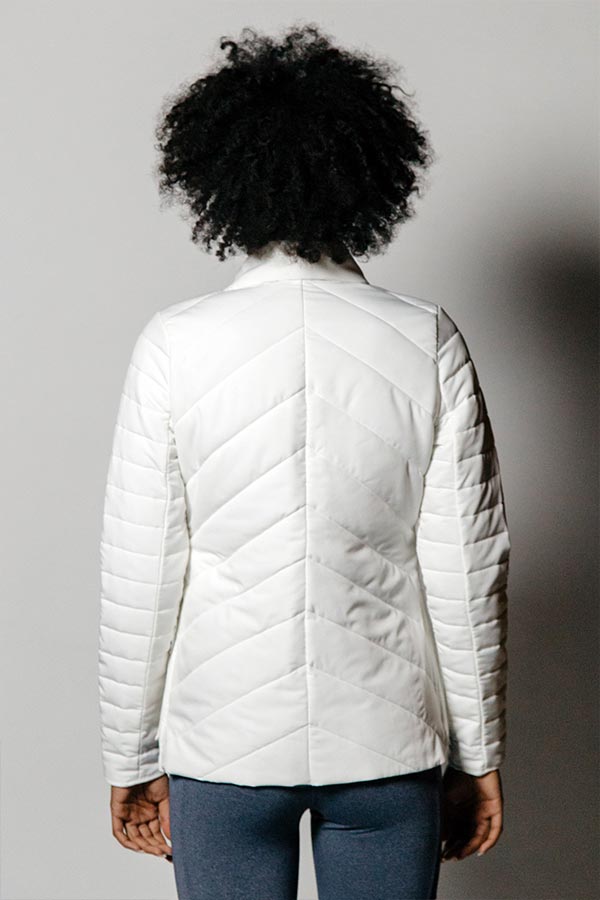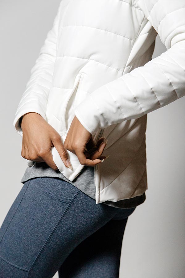 Made Responsibly in China. Our Women’s Puffer Jacket features our soft, 4-way stretch fabric. The water-resistant fabric means comfort and performance. The matte finish and intentional stitching elevates the design for versatility and sophistication. With a tailored fit to flatter the body, we’ve included side zips to accommodate the comfort of the hip and a high-low front-to-back hem for visual interest and more coverage in the back.